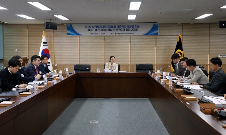연구모임 회원들은 이날 2027 충청권 하계세계대학경기대회의 성공적인 개최를 위한 세종·대전 지역상생발전을 위한 연구용역 최종 보고를 청취하고 연구진의 제언에 대한 의견과 실행 방안 등을 논의했다.
