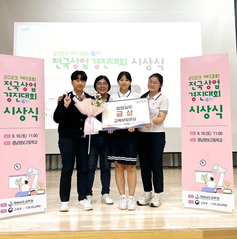 특히 창업실무 종목에 출전한 고예슬 학생은 맨홀 속 쓰레기를 효과적으로 모아 청소할 수 있도록 하는 ‘영광굴비’라는 아이템으로 전국 1등에게만 주어지는 교육부장관상의 영예를 안았다.