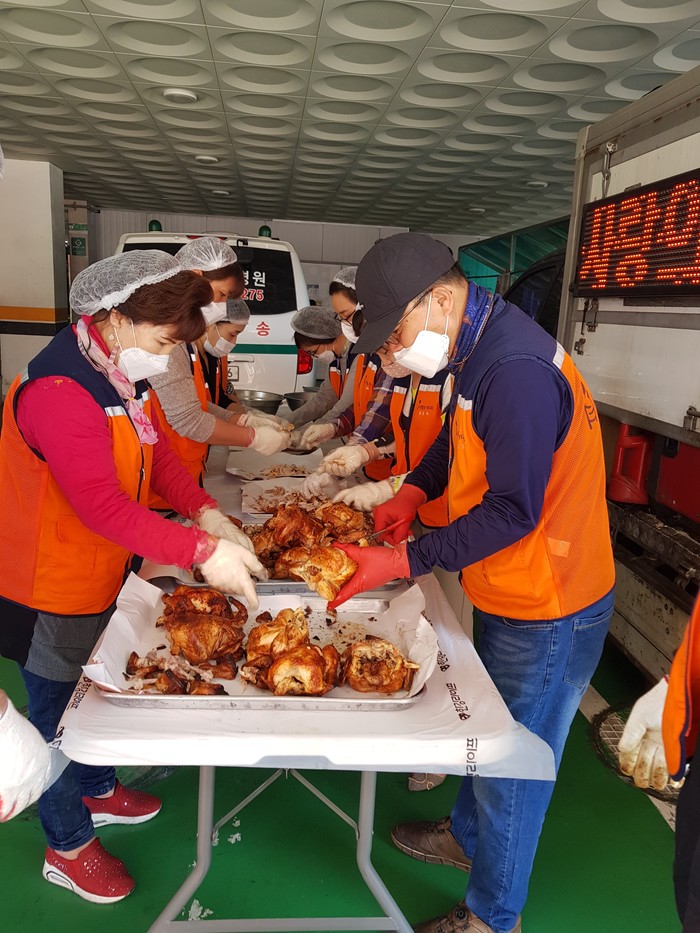 신상일 통닭 봉사 단장은 ”병상에 계시는 어르신들께서 바비큐 통닭을 맛있게 드시는 모습에서 행복과 보람을 느낀다.“고 말했다.