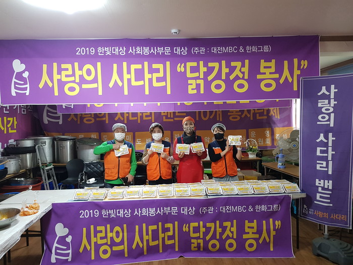 현재 9,200명으로 구성된 사랑의 사다리 밴드는 지방자치단체의 보조금 지원없이 회원들의 후원금으로 매주 2회 대전시 5개 구 소외계층을 위해서 닭강정 봉사로 우리 사회의 따뜻한 사랑 나눔을 꾸준히 펼치고 있다.