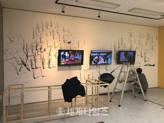 | ▲ © 세계타임즈 <홍원석, 음모, Charcoal on wall 3 x 10m installation view of HONG Won-Seok 2017> |