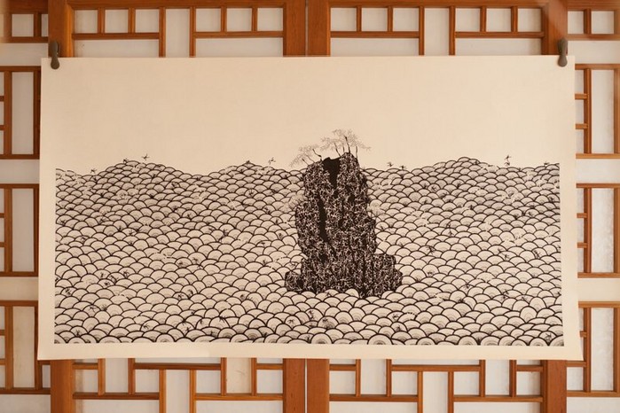 | ▲ © 세계타임즈 <강혁, 더미산수화 15, 종이에 잉크,124x70cm, 2017> |