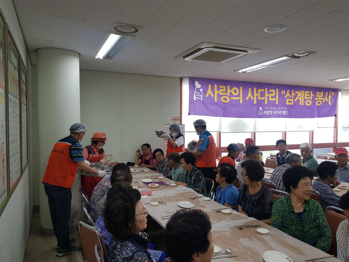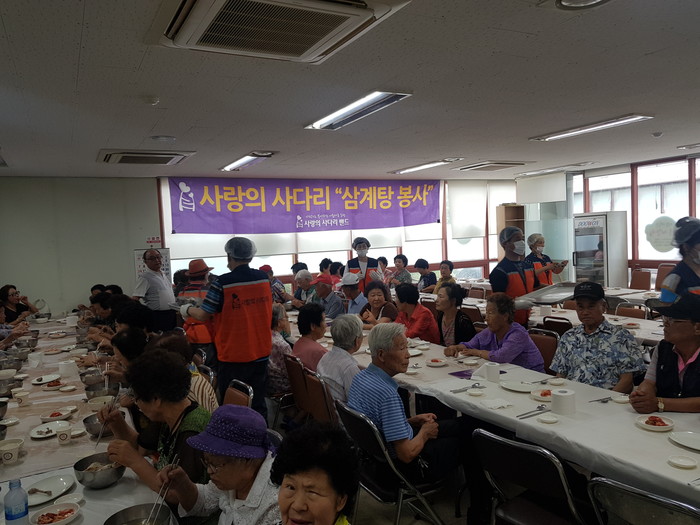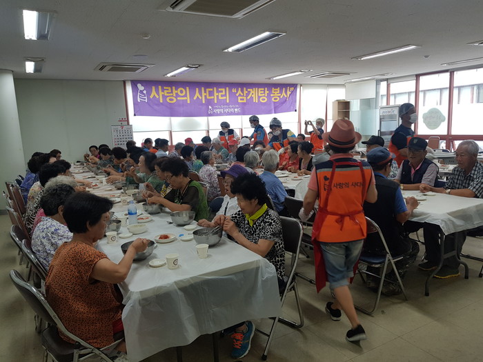 유희자 단장은 “가시오가피, 엄나무, 황기, 인삼, 대추, 밤 등을 넣은 보양식 삼계탕을 드시고 어르신들께서 올 여름을 잘 이겨내셨으면 좋겠다.“고 말했다.