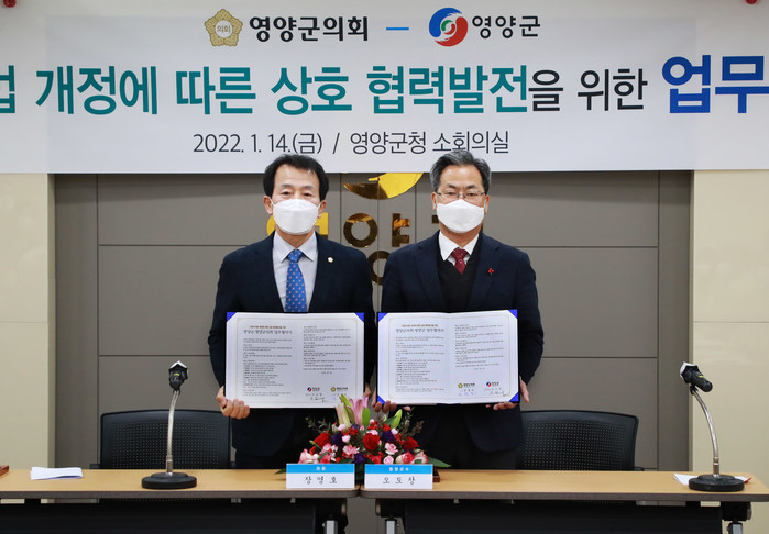 [영양군=세계타임즈 한성국 기자] 영양군의회(의장 장영호)는 14일 영양군청 소회의실에서 인사권 독립 등에 관한 업무 협약을 영양군과 체결했다.