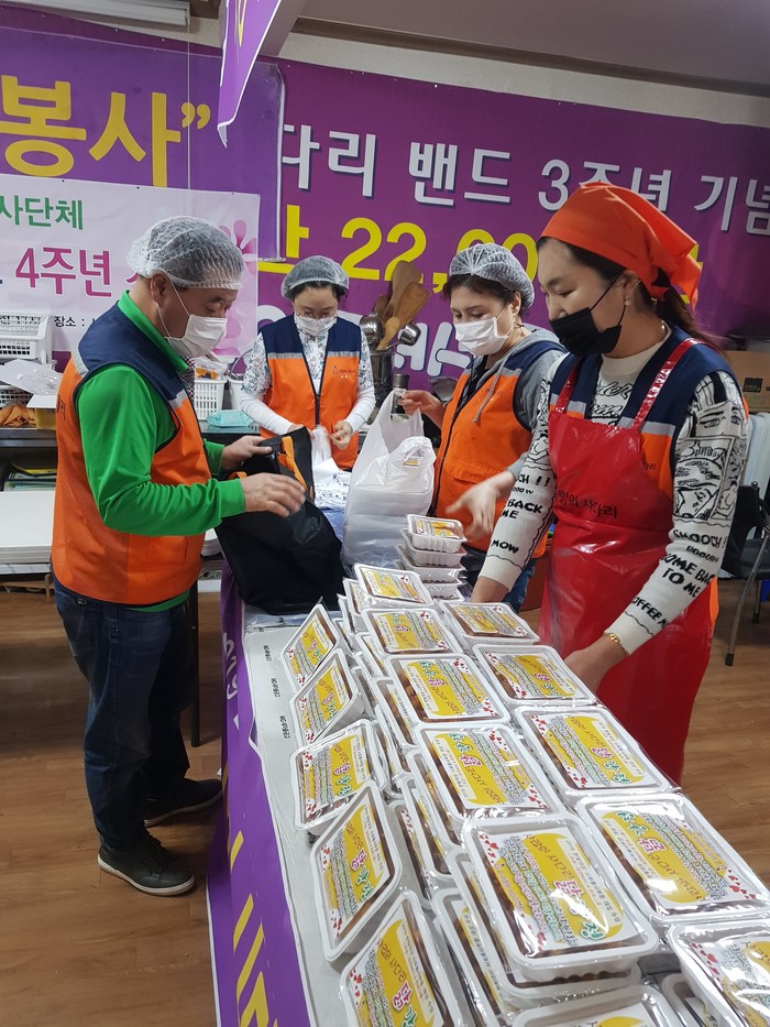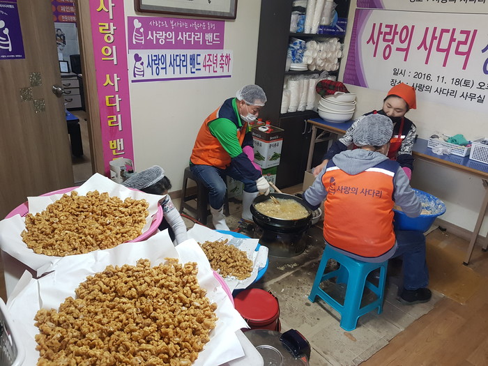 이날 봉사는 유희자 단장을 비롯해서 송혜숙 이은숙 이지유 한철웅 등 5명의 회원들이 오전10시부터 닭강정을 직접 만들어서 배달을 하였다.