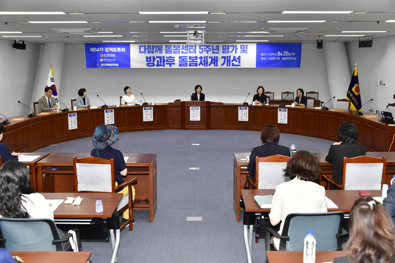 이날 발제자인 양윤이 전 전국다함께돌봄센터협회장은 지난 5년간의 다함께돌봄센터 운영현황을 평가하고 발전방향을 제시했다. 양 회장은 방과후 돌봄정책의 확대 및 강화를 통해 돌봄 사각지대를 해소하고, 질 높은 돌봄서비스를 제공할 필요가 있음을 강조했다. 또한, 돌봄서비스의 질적 향상을 위한 종사자 처우개선 및 전문성 강화를 제안했다.