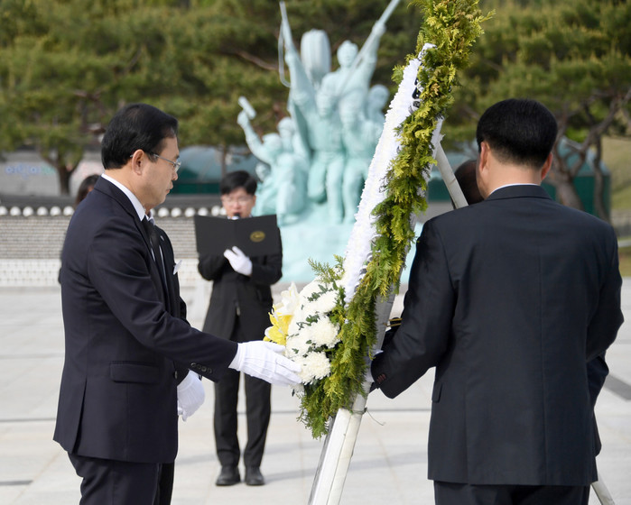 [광주=세계타임즈 손권일 기자] 김동찬 의장을 비롯한 광주광역시의회 의원 일동과 의회사무처 간부 등이 8일 오전 국립5·18민주묘지를 찾아 참배하고 5.18영령들의 넋을 기렸다.