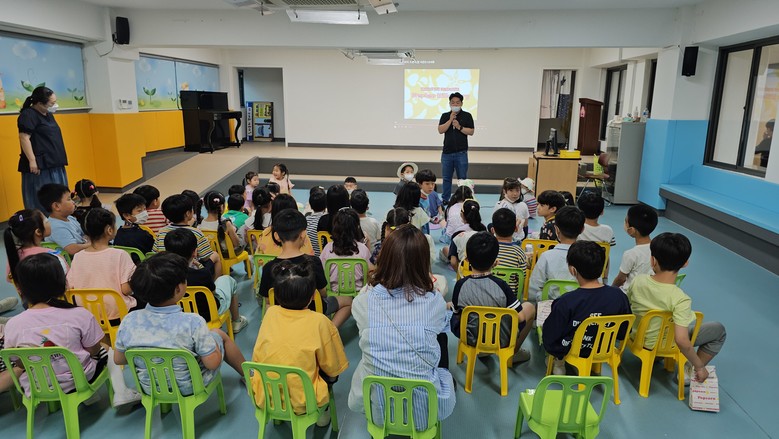 하안초등학교병설유치원 최기옥 원장님은 유치원과 초등학교가 소통하며 놀이하고 함께 참여하는 모습 자체가 유‧초이음교육이라고 말하면서 초대받은 영화관에 와서 1학년과 영화를 관람하는 시간을 가졌다.