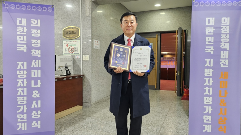 이승우 의원은 의회 출석률, 조례 입법 실적 및 시정질문 및 5분 발언 등을 종합 평가한 항목에서 높은 평가를 받아 작년에 이어 올해도 최우수상 수상의 영예를 안았다.