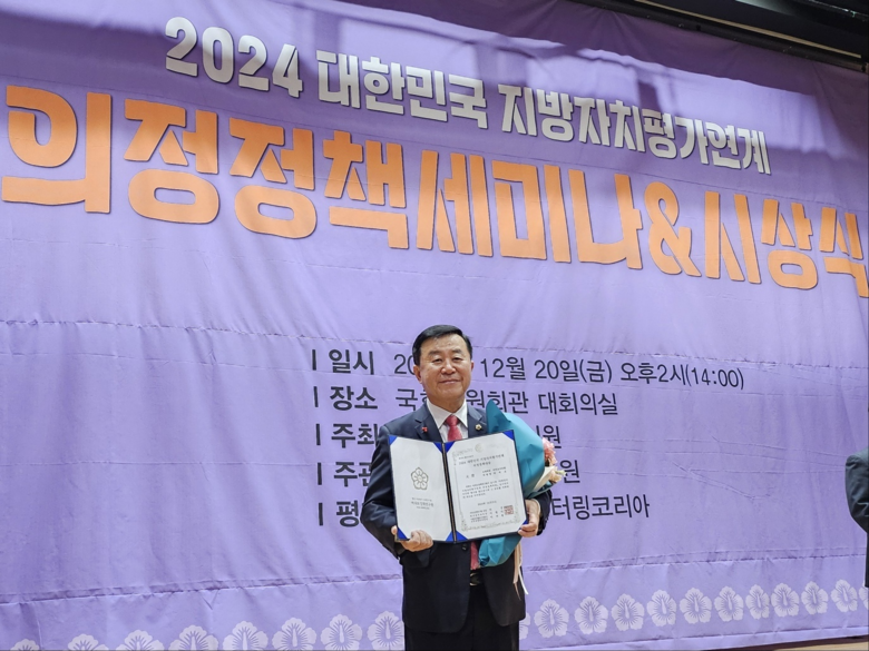 2024 대한민국지방자치평가연계 의정정책대상은 사단법인 여의도정책연구원에서 통계화한 행복지수 산정자료와 지방자치의회 의원들의 조례입안 및 지역정책 기여도 등을 객관적 통계심사 기반으로 대한민국 지방자치의정 발전과 지역주민의 삶의 질 향상을 위해 공로가 큰 전국 광역·기초자치단체 의원에게 시상하는 상이다.