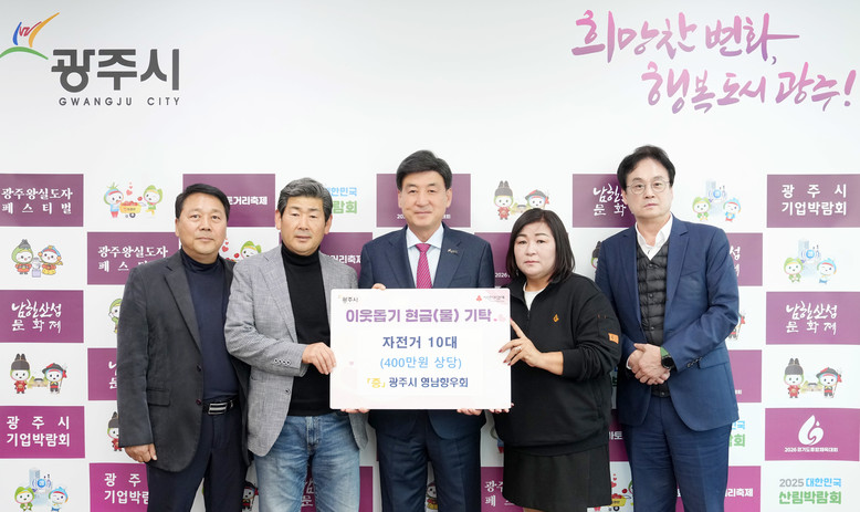 이에 대해 방세환 시장은 “지역사회와 함께하는 다양한 나눔 활동이 이어져 더 행복한 광주시를 만드는 데 밑거름이 되고 있다”며 “기탁하신 소중한 자전거는 지역 내 이웃들에게 잘 전달하겠다”고 말했다.