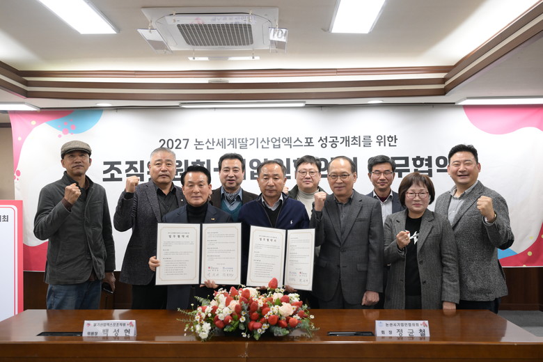 한편, 충청남도와 논산시가 공동 주최하는 ‘2027 논산세계딸기산업엑스포’는 내년 2월 26일부터 3월 21까지 논산시민가족공원 일원에서 ‘K-베리 스마트한 농업, 건강한 미래’를 주제로 개최되며, 38개국 154만 명의 관람객 방문을 목표로 하고 있다.