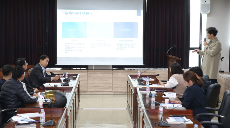 이날 교육은 남동구의회 의원들과 직원들을 대상으로 실시하였고, 강의를 진행한 생활정책연구원 고향사랑기부제 연구소 김용태 소장은 고향사랑기부제에 대한 설명과 함께 제도의 활성화를 위한 방안과 홍보전략 마련 등의 필요성 등을 강조하였다.