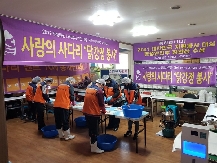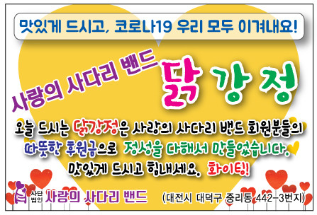 대전장애인주간보호시설 유근선 회장은 “매주 2회 사랑의 사다리 밴드 봉사단체에서 대전장애인주간보호시설에 맛있는 닭강정을 지원해 주어서 큰 힘과 위안이 된다.”면서 감사함을 전했다.