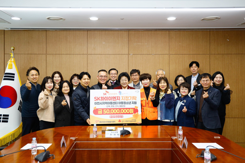 [이천시 세계타임즈=송민수 기자] (재)이천시자원봉사센터(이사장 김경희)는 19일 이천시청 중회의실에서 SK하이이엔지(대표이사 윤종수)와 함께 관내 12개 지역아동센터 아동·청소년 지원을 위한 ‘지정기탁식’을 개최했다.