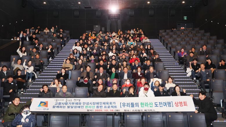 [안성시 세계타임즈=송민수 기자] 안성시 장애인체육회는 발달장애인과 비장애인이 함께 한라산 정상에 오르는 도전 과정을 담은 ‘한라산 등반 다큐멘터리 상영회’를 성공적으로 개최했다고 밝혔다.