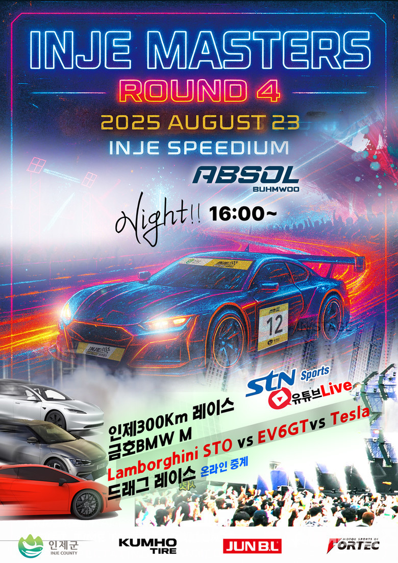 인제 마스터즈 시리즈는 인제군과 금호타이어가 후원하며, 이번 4라운드는 엔진오일 브랜드 ‘앱솔(ABSOL)’이 특별 후원한다.