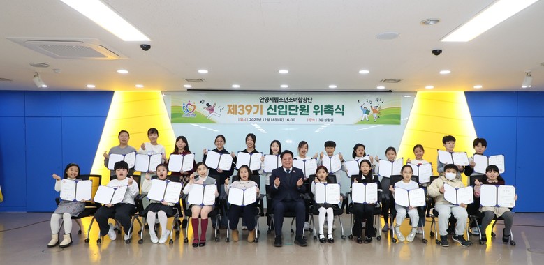 [안양시 세계타임즈=송민수 기자] 안양시는 지난 18일 시청 3층 상황실에서 ‘시립소년소녀합창단 제39기 신입단원 위촉식’을 개최하고 오디션을 통해 선발된 신입단원 23명에게 위촉장을 수여했다고 19일 밝혔다.