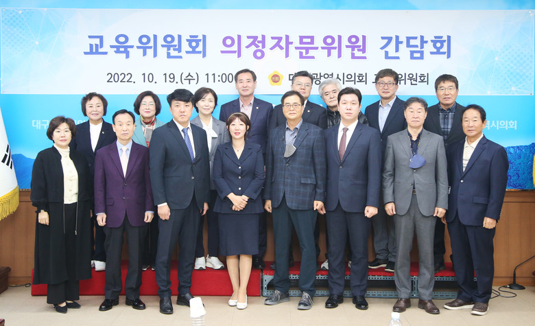 [대구 세계타임즈=한성국 기자] 대구광역시의회 교육위원회(위원장 이동욱)는 10월 19일(수) 11시 시의회 2층 간담회장에서 의정자문위원과 교육위원회 위원 등 17명이 참석한 가운데 의정활동의 내실화와 전문성 제고를 위한 의정자문위원 간담회를 가졌다.