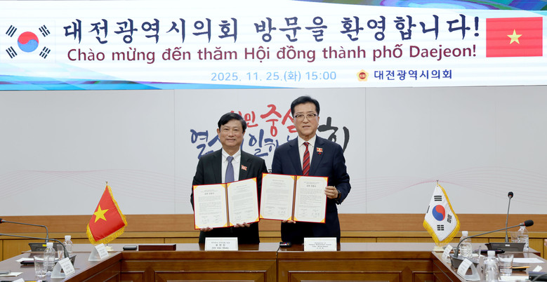 [대전 세계타임즈=이채봉 기자] 대전시의회(의장 조원휘)는 25일, 베트남 호치민시 인민의회 대표단을 공식 접견하고, 양 도시 의회 간 교류의향서를 체결하며 상호 협력 기반을 강화했다고 밝혔다.