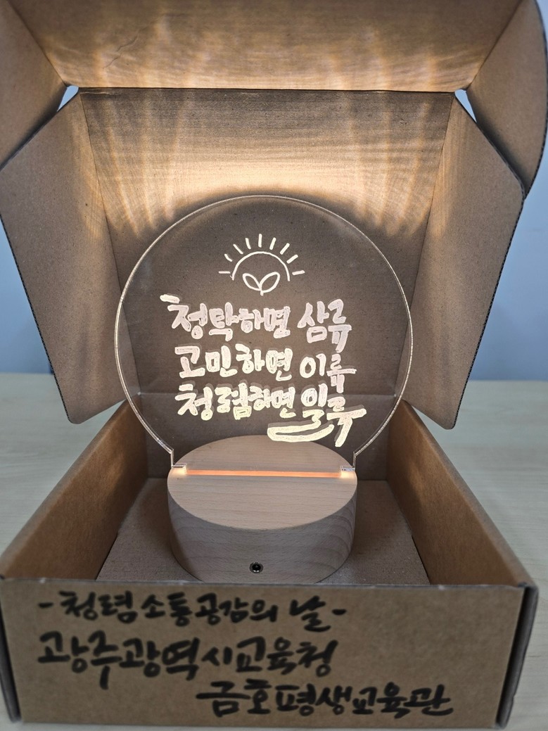 금호평생교육관 선계룡 관장은 “직원 모두가 청렴을 생활화할 때 진정한 신뢰 행정이 완성된다”며 “조직 구성원 모두가 뜻을 합쳐 청렴 문화를 만들어 가겠다”고 말했다.