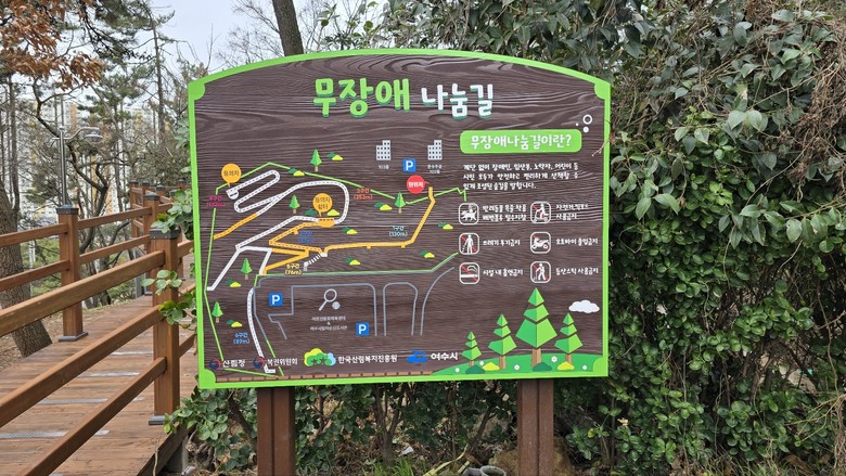 무장애나눔길 사업은 장애인, 노약자, 임산부 등 보행약자층이 숲길ㆍ산책로 등을 보다 편리하고 안전하게 이용할 수 있도록 목재데크 등을 설치하여 보행 환경을 개선하는 사업이다.