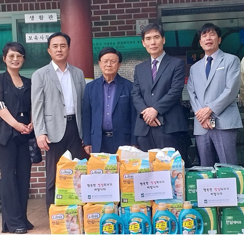 학생교육원 직원들은 이날 ‘화순 사랑의 집’을 방문해 성인 기저귀, 생필품 등 30만원 상당의 후원 물품을 전달했다.