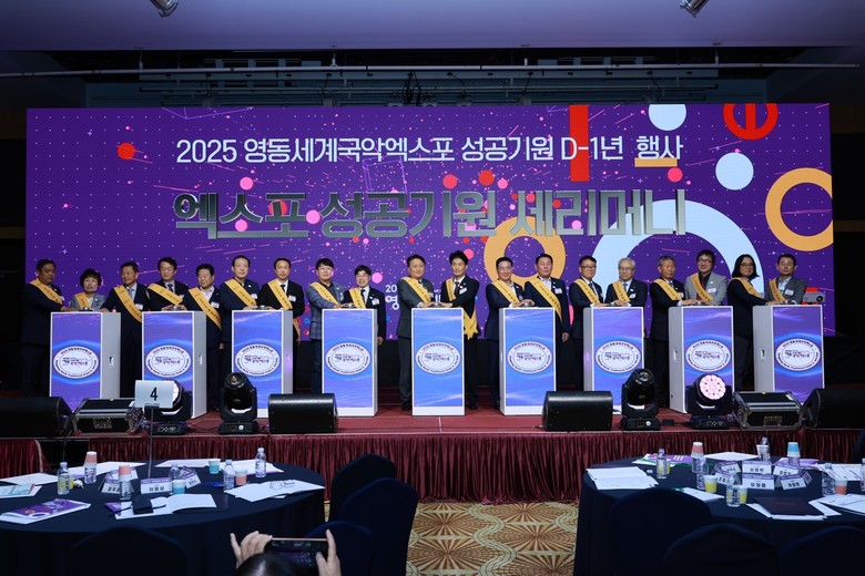2025 영동세계국악엑스포는 국악을 주제로 하는 세계 최초의 엑스포로 ‘국악의 향기, 세계를 물들이다.’라는 주제로 내년 9월 12일부터 10월 11일까지 한달간 영동군 레인보우 힐링관광지 일원에서 개최되며, 세계 30여 개국의 해외공연단이 초청되고, 100만 명의 국내외 관람객이 엑스포장을 찾을 것으로 기대를 모으고 있다.