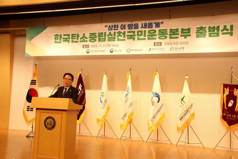 한국탄소중립실천국민운동본부(총회장 오호석·수석 부회장 조재천)는 21일 국회도서관에서 출범식을 열고 ‘2050 탄소중립’ 달성을 위한 실질적인 행동 방안을 제시했다.