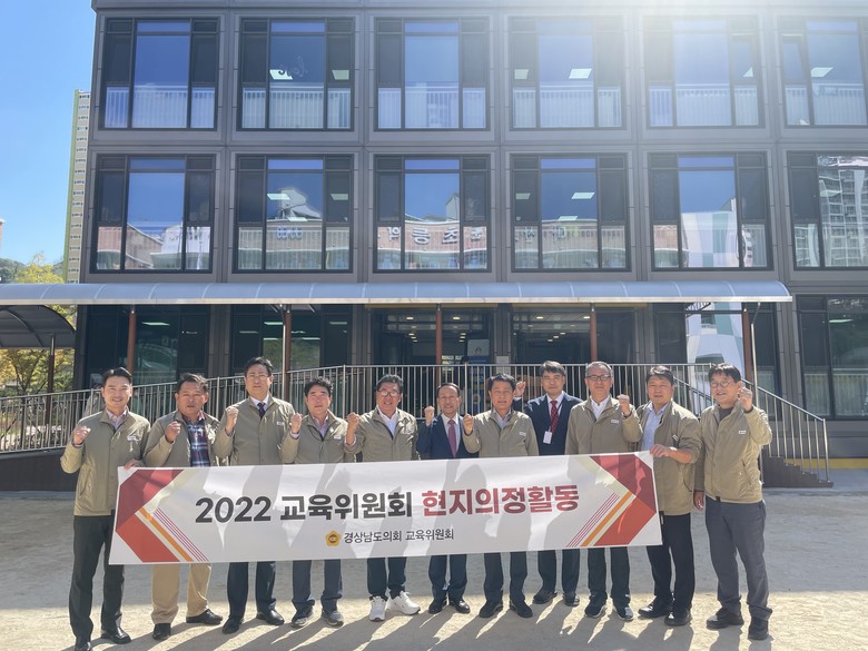 교육위는 먼저 12일 오전, 창원에 소재한 경남혜림학교를 방문하여 특수학교 운영 현황을 확인하고, 연이어 방문한 마산고운초에서는 모듈러 교사 운영 시설을 점검하고 관련 현장을 둘러보았다.