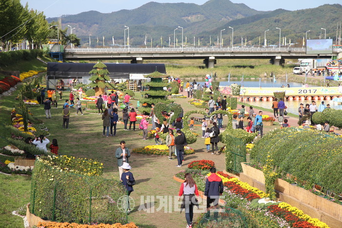 [충북 보은군=세계타임즈 이현진 기자] 2017 보은대추축제장에 조성된 국화 꽃동산이 축제장을 찾은 관광객들로부터 큰 인기를 얻고 있다.