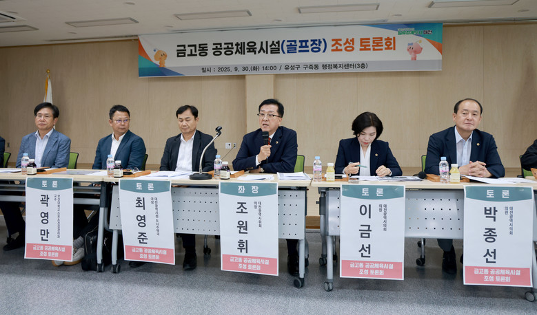 30일 대전 구즉동 행정복지센터에서 금고동 공공체육시설(골프장) 공론화를 위한 토론회가 열렸다. 이날 토론회는 대전 북부 생활권의 발전 방안을 모색하기 위해 마련됐다.