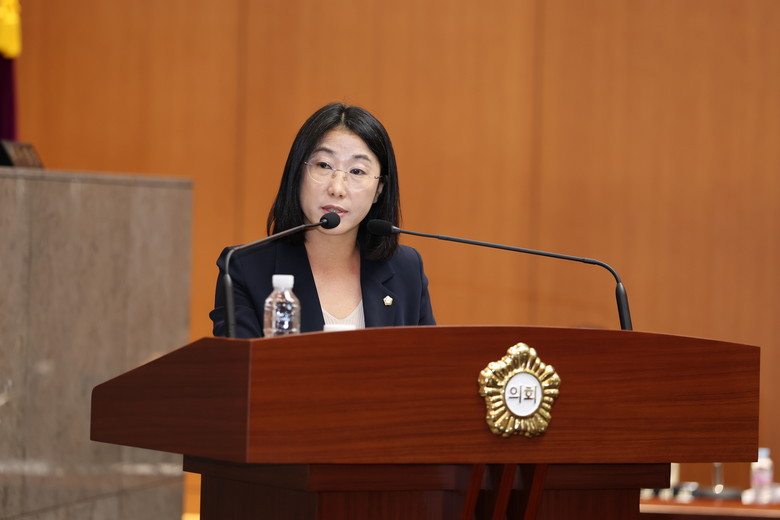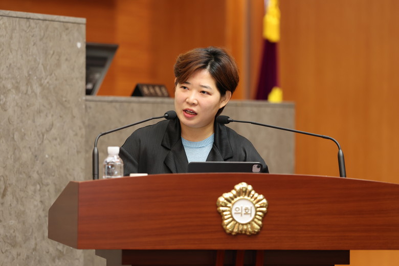 ▲ 엄샛별 의원은 구청장을 대상으로 한 일문일답 방식의 구정질문에서 금천구 체육회 예산이 특정 이해관계자에게 반복 집행되고, 일부 예산의 사용처가 불분명하며, 체육회 임원 및 가족 업체에 예산집행이 집중되는 등 구조적 문제가 지속되고 있음을 지적했다. 엄 의원은 생활체육 예산의 투명한 집행과 관리감독 강화, 회계 감사 시스템의 실효성 제고를 촉구했다. 또한 공연예술사업의 수의계약 상의 문제점 등 문화체육 분야 전반의 회계 투명성 및 감시 시스템 강화의 필요성을 강조했다. 이어 시흥유통상가 및 철재유통상가 개발사업의 장기 지연과 주민청원에 대한 실질적인 대응 부족을 비판하며, 구체적 성과와 책임 있는 행정 추진을 요구했다. 특히, 과거 공공기여 항목으로 검토하겠다던 석수역 추가 출입구 설치가 계획안에서 빠진 점을 지적하며, 주민 의견을 반영한 명확한 추진계획 수립과 약속 이행을 촉구했다.
