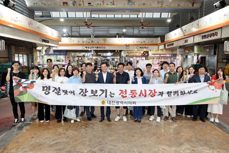 조원휘 의장을 비롯한 이금선 교육위원장, 시의회사무처 직원들은 유성구에 있는 송강 전통시장을 찾아 농축수산물과 제수용품을 직접 구매했다.