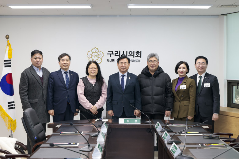 [구리시 세계타임즈=송민수 기자] 구리시의회(의장 신동화)는 2월 2일 14시 의장실에서 구리시기동순찰대(연합대장 김봉수)와 간담회를 개최하였다. 이날 간담회에는 신동화 의장, 김성태 부의장, 정은철 운영위원장, 권봉수 의원, 양경애 의원과 기동순찰대 대원 등 7명이 참석했다.