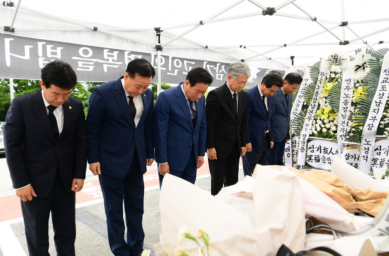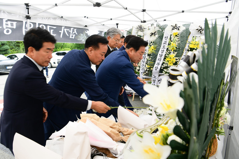 김진부 의장은 헌화와 분향을 한 후 방명록에 “다시는 이런 일이 반복되지 않도록 바꾸어 나갈 것”을 남기며 재발방지에 대한 실질적인 대책 수립을 촉구했다.
