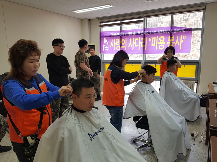 육군군수사령부 김중사는 “오늘 추운날씨에도 사랑의 사다리 밴드의 미용봉사가 군사기 진작에 큰 힘이 된다.”면서 감사함을 전했다.
