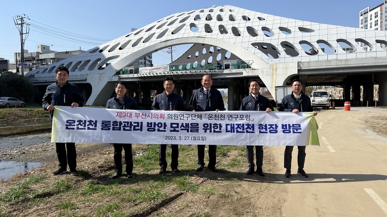 [부산 세계타임즈=이용우 기자] 부산광역시의회 ‘온천천 연구포럼(회장 안재권 의원, 연제구1)’은 27일 온천천의 통합관리 등 관리개선을 방안 마련을 위해 대전광역시의회 및 대전천 하천관리 현장방문을 실시했다.