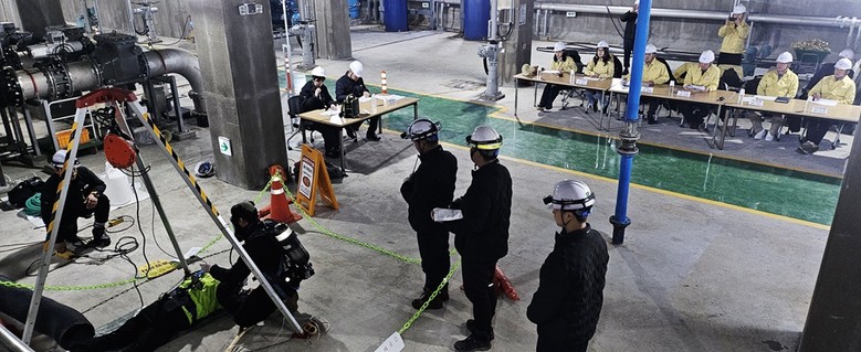 훈련은 ▲밀폐공간 내 작업자 의식 저하 상황을 가정한 상황전파 및 초기보고 ▲위험요인 파악과 긴급구조 요청 ▲구조대 도착 전 응급조치 및 현장 통제 ▲환기 장치 및 가스농도 측정 장비 활용 ▲사고 원인 분석 및 사후조치 절차 점검 순으로 진행됐다.