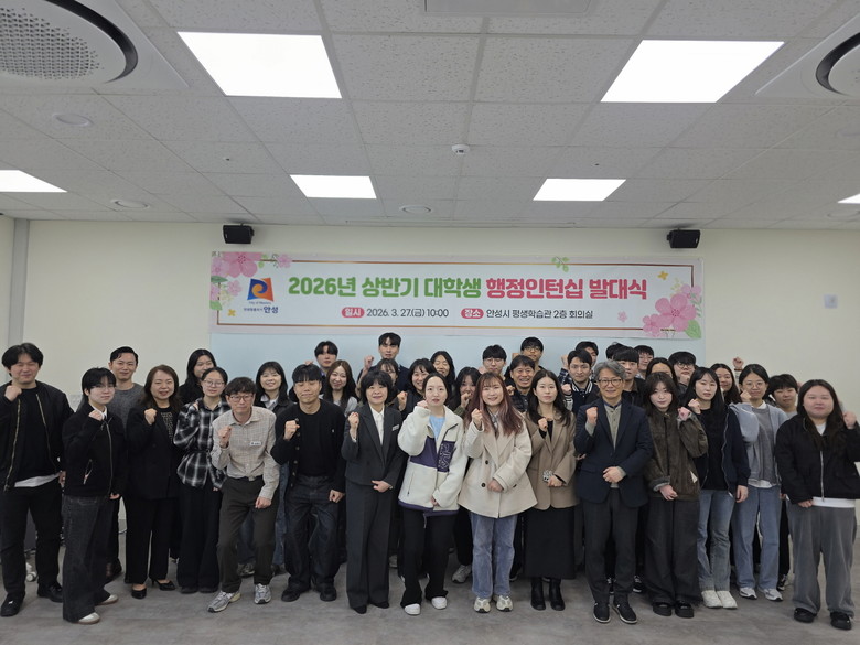 [안성시 세계타임즈=송민수 기자] 안성시는 지난 27일 안성시 평생학습관 회의실에서 관내 대학생들과 공직자가 함께 시정 발전을 도모하는 ‘2026년 상반기 대학생 행정인턴십 발대식’을 개최했다.