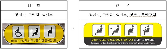 교통약자석에 영유아 동반고객도 이용할 수 있도록 표식 개선