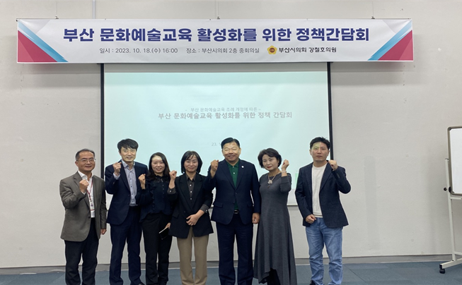 [부산 세계타임즈=이용우 기자] 지난 18일 부산시의회 중회의실에서 강철호의원(행정문화위원회·동구1) 주제로 「부산광역시 문화예술교육 활성화」에 방안에 대한 간담회를 개최하였다.