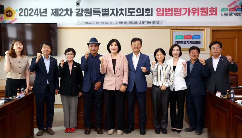 [강원도 세계타임즈=김민석 기자] 2024년 제2차 강원특별자치도의회 입법평가위원회*(위원장 임미선)가 6월 19일(수) 15시에 의회 운영위원회 회의실에서 개최되었다.
