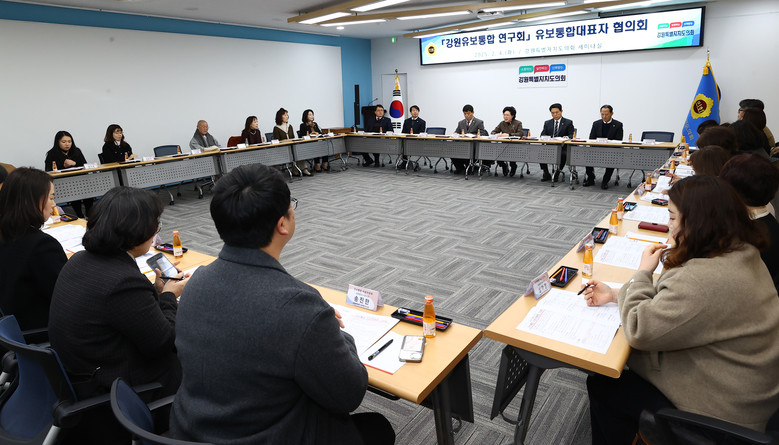 [강원도 세계타임즈=김민석 기자] 제11대 강원특별자치도의회의원 연구 모임인 「강원유보통합 연구회」(회장 원미희 의원)가 4일 도의회 세미나실에서 간담회를 개최하고 강원유보통합 성공을 위한 강원자치도의회의 역할을 모색하였다.