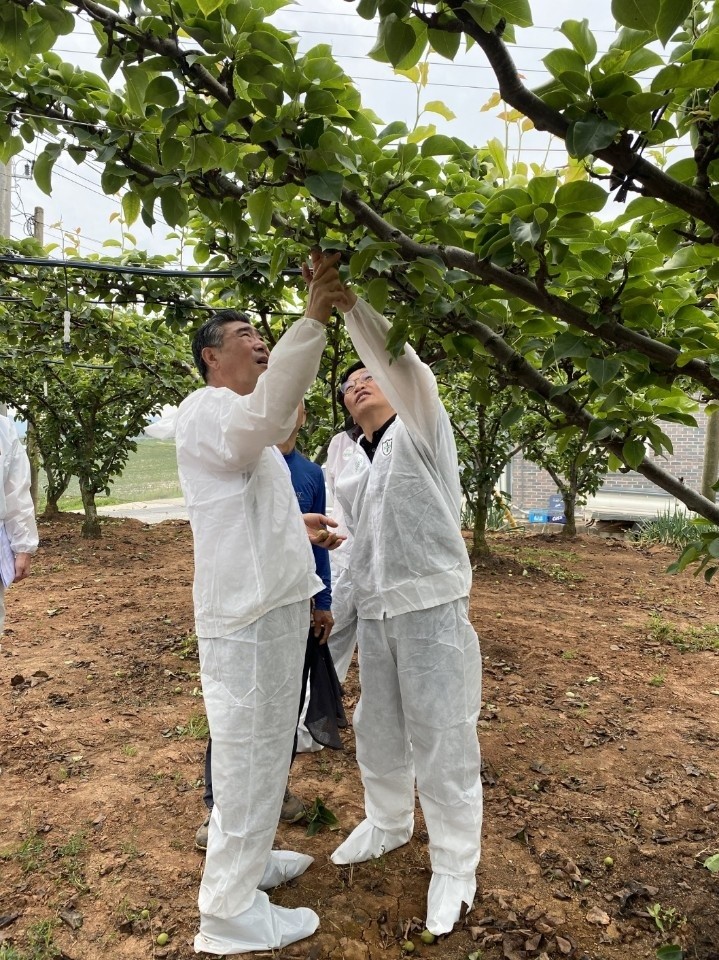 왕곡면의 배 과수 피해농가 박승도 씨는 “흑성병이 농작물재해보험 적용대상이 안 돼, 큰 걱정이고 피해가 큰 농가는 올 농사를 포기해야 해 정부의 특별 지원대책이 필요하다”며 “보험 가입 시 적과전 보상비율을 50%에서 80%로 상향하고, 이외에도 수확량 평균(5년) 산정 시 최저 수확량을 제외하는 등 공정하게 평균을 낼 수 있도록 해야 한다”고 호소했다.