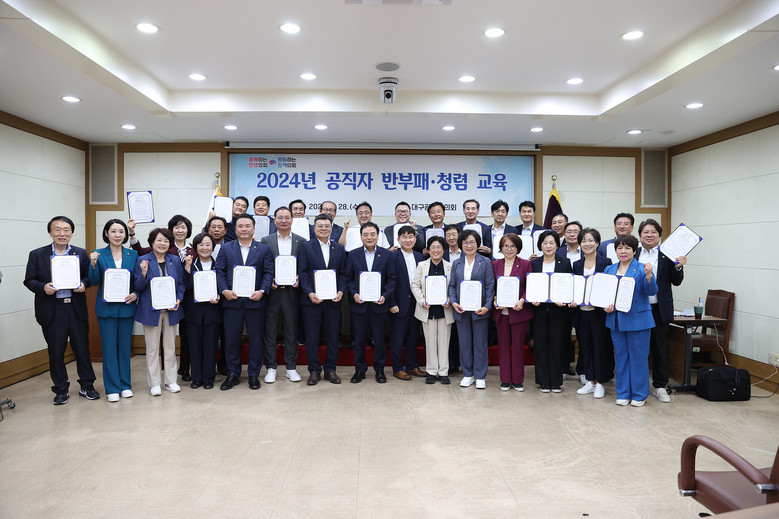 [대구 세계타임즈=한윤석 기자] 대구광역시의회(의장 이만규)는 8월 28일(수) 오후 2시 대구시의회 3층 회의실에서 ‘2024년 반부패 청렴교육’을 실시했다.