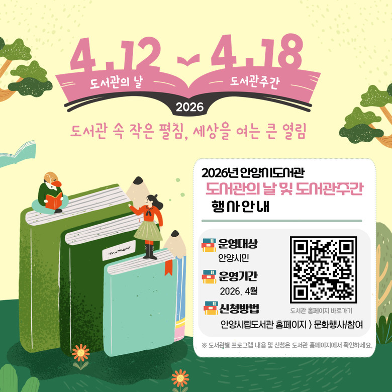 도서관 관계자는 “이번 도서관 주간을 통해 시민 누구나 일상 속에서 책을 통해 따뜻한 위로를 경험하고, 상상력을 마음껏 펼치는 풍성한 봄날을 누리시길 바란다”고 전했다.