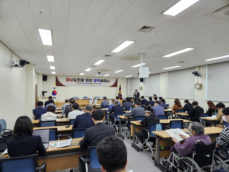 23일 경상남도의회 대회의실에서 ‘건강도시 법제화에 따른 경남의 대응’이라는 주제로 경남도민을 위한 정책세미나가 열렸다. 이날 세미나는 국민건강증진법 제6조의5에 ‘건강도시 조성 등’이라는 조문이 신설됨에 따라 향후 조례 제정 등에 대비한 토론회로, 글로컬 건강도시 경남연구원이 주관했다.