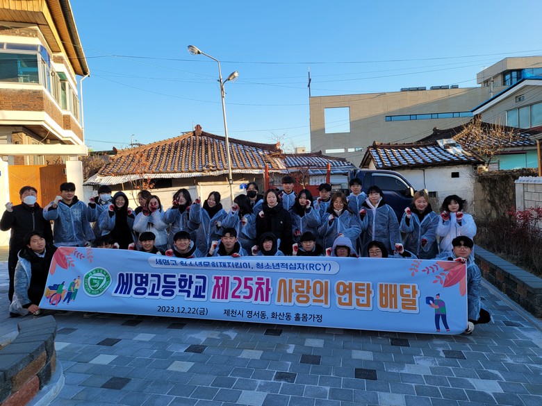 [충북 세계타임즈=이현진 기자] 세명고등학교(교장 권순형) 청소년 문화재 지킴이와 청소년적십자(RCY)가 22일(금) 오후 4시부터 6시까지 제천시 영서동과 화산동에 거주하는 홀몸 노인 가정 두 곳을 방문하여 사랑의 연탄 배달 봉사활동을 펼쳤다.
