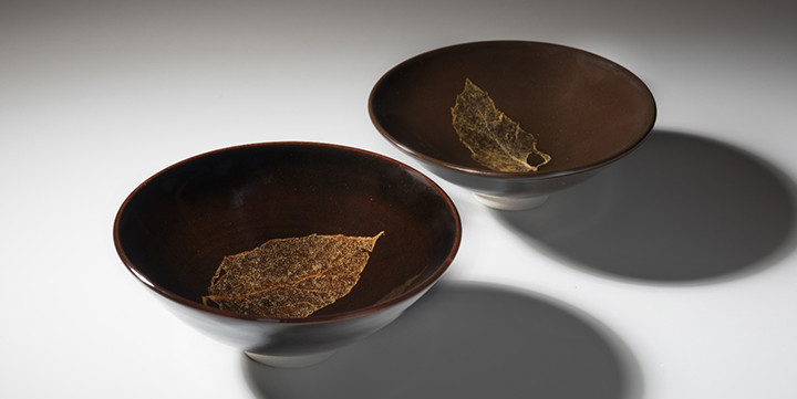 이번 전시의 주제는 ‘목엽천목’이다. ‘목엽천목’은 중국의 당·송 시대 저장성 항주의 천목산에서 수행하던 고승들이 만들어 쓰던 찻잔에서 이름이 유래했다고 한다. 성형한 다기에 검은 유약을 바르고 뽕잎 같은 마른 나뭇잎을 올려놓은 뒤 1,300도 고온에서 구워 그 무늬가 고스란히 남아야 하므로 성공률이 매우 낮은 작품이다. 만들기 어려운 만큼 그 가치는 높이 평가받고 있다. 일본 세이카도 분코미술관, 오사카 동양도자미술관 등에서 국보, 보물로 지정되어 있다.